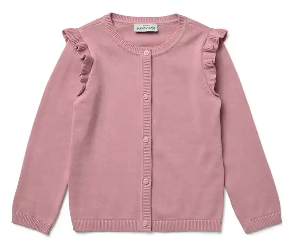 Kinder-Strickjacke Farbe: Altrosa Material: 100% Baumwolle (aus ökologischem Anbau) Sonstige Hinweise: Größenlauf/Alter: Gr. 86/92 (ca. 12 – 24 M.) Gr. 98/104 (ca. 2 – 4 J.) Gr. 110/116 (ca. 4 – 6 J.) Gr. 122/128 (ca. 6 – 8 J.) Mit Volants am ÄrmelansatzRippbündchen an Ausschnitt, Knopfleiste, Ärmeln und SaumGerader SchnittKnopfleiste vorneAus Bio-BaumwolleDiese Strickjacke schützt Wasserressourcen.