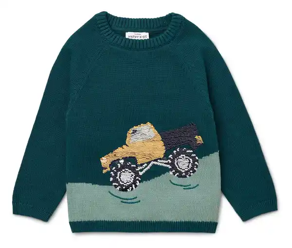 Kinder-Strickpullover Farbe: Dunkelgrün mit mehrfarbigem Truck Material: 100% Baumwolle (Unterstützt die Initiative Cotton made in Africa) Sonstige Hinweise: Größenlauf/Alter: Gr. 86/92 (ca. 1 – 2 J.) Gr. 98/104 (ca. 2 – 4 J.) Gr. 110/116 (ca. 4 – 6 J.) Gr. 122/128 (ca. 6 – 8 J.) Ab Gr. 98/104 mit Wende-PaillettenGr. 86/92 mit Applikation und StickereiGr. 86/92 mit Knopfleiste am Halsausschnitt zum einfachen An- und AusziehenMit Raglan-ÄrmelnDekorative Rippe an Saum und HalsausschnittUnterstützt die Initiative Cotton made in AfricaDieser Pullover unterstützt die Farmer*innen.