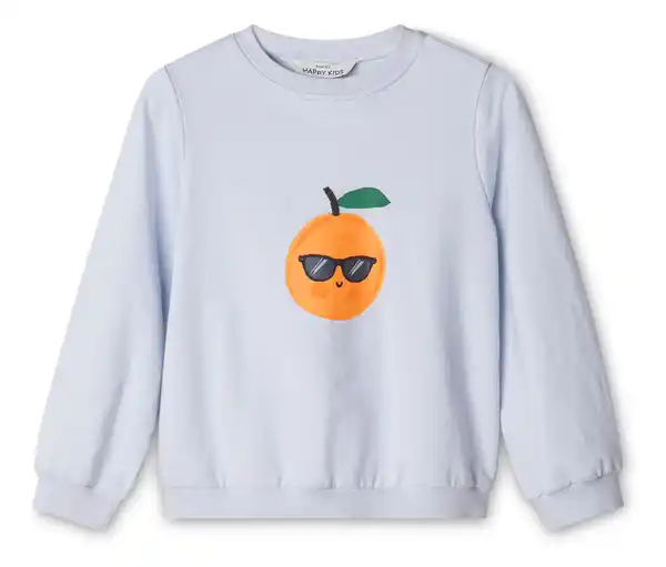 Kinder-Sweatshirt Farbe: Mittelgrau mit mehrfarbigem Orangen-Print Material: 100% Baumwolle Sonstige Hinweise: Größenlauf/Alter: Gr. 86/92 (ca. 1 – 2 J.) Gr. 98/104 (ca. 2 – 4 J.) Gr. 110/116 (ca. 4 – 6 J.) Gr. 122/128 (ca. 6 – 8 J.) Hautsympathische reine BaumwolleRippbündchen an Ausschnitt, Ärmeln und SaumGerader SchnittMit Orangen-PrintAus Baumwolle