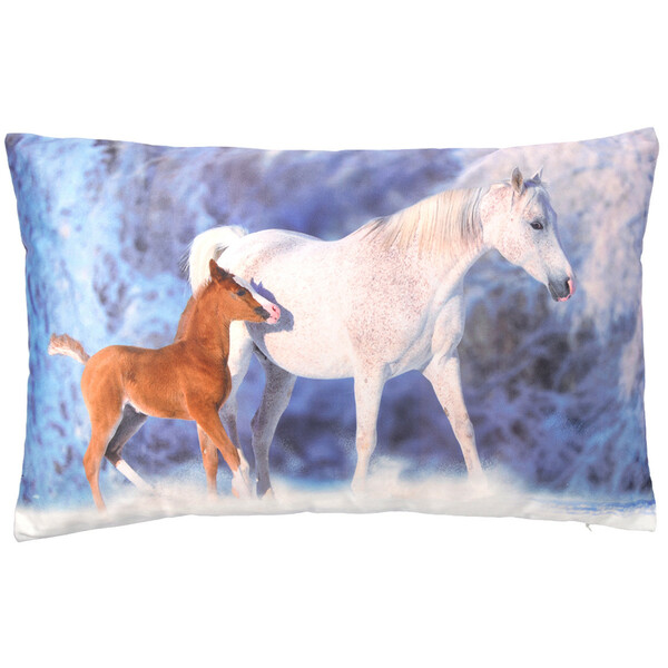 Details Tolles Bild! Weiches Kissen in Weiß mit Pferde-Fotoprint auf der Vorderseite und Reißverschluss an der Unterseite. Inklusive Füllung. Maße ca. 50 x 30 cm (BxH). - Pferde-Print - Mit Reißverschluss - Inklusive Füllung Breite: 50 cm Höhe: 30 cm Artikelnummer: 8438060901 Material - Kissenbezug: 100% Polyester - Hülle: 100% Polypropylen - Füllung: 100% Polyester