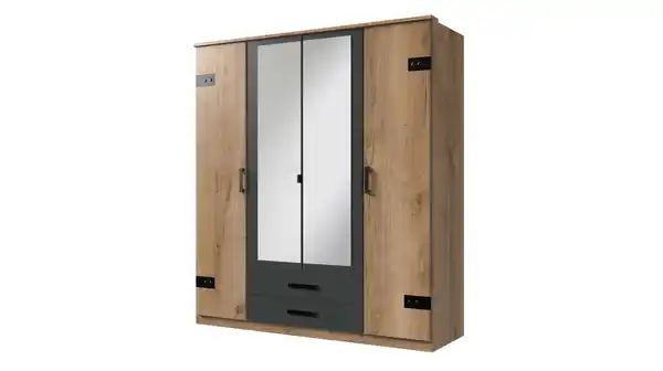 Kleiderschrank Plankeneiche - graphit 180 cm 4-türig - CORK