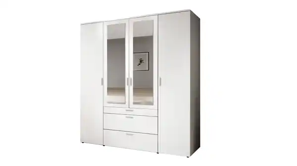 Kleiderschrank weiß mit Spiegel - 180 cm - 4-türig - VESALA