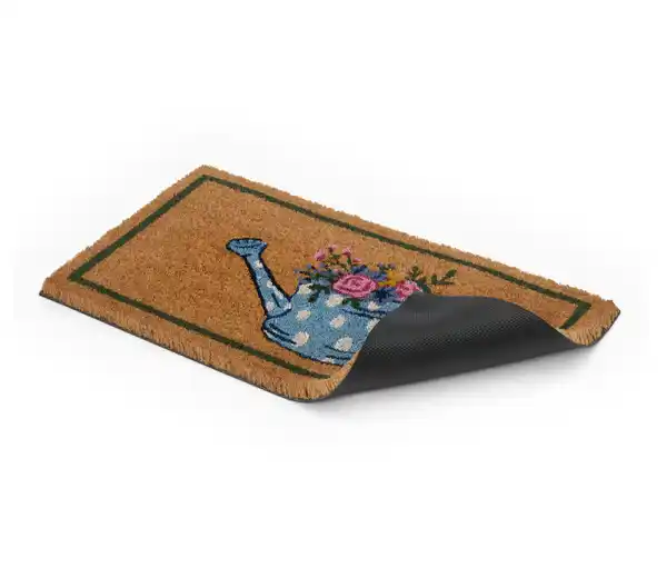 Kokos-Fußmatte Farbe: Braun mit mehrfarbigem Motiv Material: Kokosnussfasern Rückseite 100% Polyvinylchlorid Maße: Ca. 50 x 28 cm Stärke ca. 1,5 cm Für den Innen- und überdachten EingangsbereichRutschhemmende UnterseiteOberseite aus reiner Naturfaser – robust und pflegeleichtKompakte Größe mit Blumen-Motiv