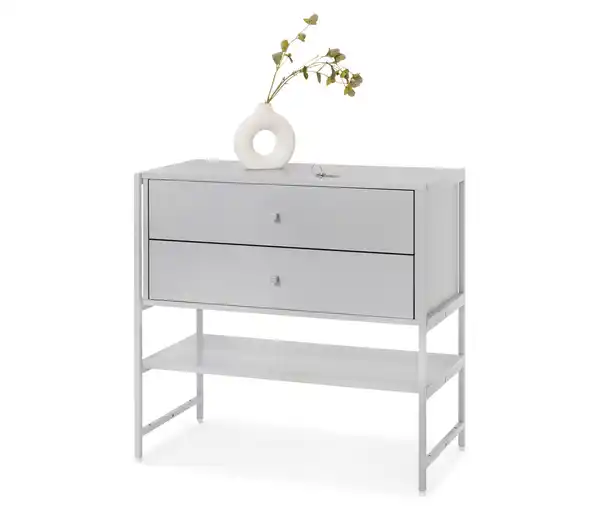 Kommode »GRADE« mit 2 Schubladen, grau Farbe: Marmorgrau Gestell weiß Griff matt silberfarben Material: FSC®-zertifizierte mitteldichte Holzfaserplatte, melaminharzbeschichtet Gestell Stahl, pulverbeschichtet Griff Zinkdruckguss, lackiert Maße: B x H x T ca. 80,3 x 76,8 x 40 cm B x H x T Schubladen innen je ca. 68,5 x 12 x 29 cm Regalboden ca. 36,7 x 40 cm. Abstand Boden ca. 8 cm Inhalt: Inkl. Wandbefestigung, Bodenschonern, Montagematerial und -anleitung Gewicht: Ca. 28,5 kg Tragkraft: Ablage, Schubladen und Regal je max. 5 kg Sonstige Hinweise: Artikel wird zerlegt geliefert Lieferung in 2 Packstücken Ein Element unserer »GRADE«-Möbel-SerieVielseitig mit weiteren Elementen der Serie kombinierbarStauraummöbel in zeitlosem, skandinavischem Design2 Schubladen mit seitlichen Auszugsschienen und Soft-CloseHöhenverstellbares RegalEleganter Metallgriff in matter OptikKorpus, Fronten und Einlegeböden FSC®-zertifizierte mitteldichte Holzfaserplatte, melaminharzbeschichtet in EichenoptikRobuster, stabiler und langlebiger Metall-RahmenHöhenverstellbare Füße für einen sicheren Stand