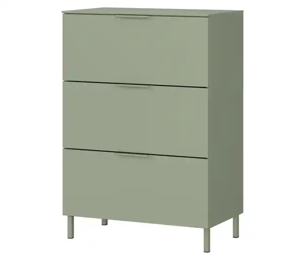 Kommode »Savoca«, klein, taupegrün Farbe: Taupegrün Material: Melaminharzbeschichtete Spanplatte Füße und Griffe Metall Maße: B x H x T ca. 68 x 98 x 40 cm Inhalt: Inkl. Montageanleitung Gewicht: Ca. 32,3 kg Tragkraft: Oberboden und Schubladen max. 10 kg Gebrauchsanweisung: Keine alkoholhaltigen Mittel, Schleifmittel oder statisch aufgeladenen Staubreiniger verwenden Mit einem trockenen Tuch wischen Montage unter Berücksichtigung der Angaben in der Aufbauanleitung Sonstige Hinweise: Artikel wird zerlegt geliefert Lieferung in 1 Packstück Anlieferung frei Verwendungsstelle Keine Inselbelieferung B x H x T Packstück ca. 42 x 17,7 x 111,7 cm Gewicht Packstück ca. 32,5 kg 3 SchubladenKratzfeste und widerstandsfähige OberflächenbeschichtungStoß- und schlagfeste KantenMit SchubladendämpfungFüße und Griffe aus MetallKommode 1478-628 in TaupegrünMADE IN GERMANY