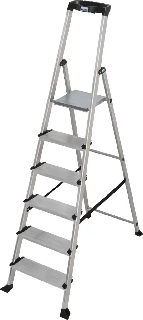 Krause Aluminium Stufen-Stehleiter Sepuro 6 Stufen mit Ablageschale 3,25 m