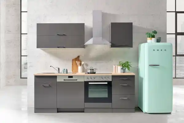 Küchenblock Mailand Anthrazit inkl. E-Geräte, Anthrazit, Eichefarben, Anthrazit Hochglanz