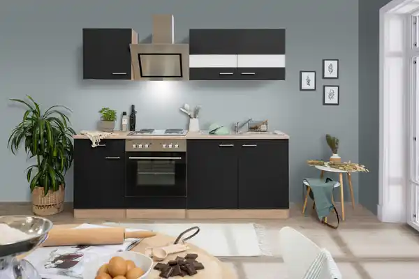 Küchenblock Merle mit Geräten ca. 210 cm Schwarz, Schwarz