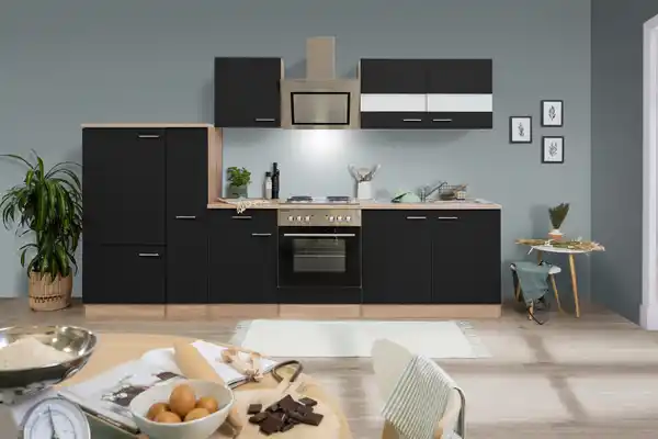 Küchenblock Merle mit Geräten ca. 300 cm Schwarz, Schwarz