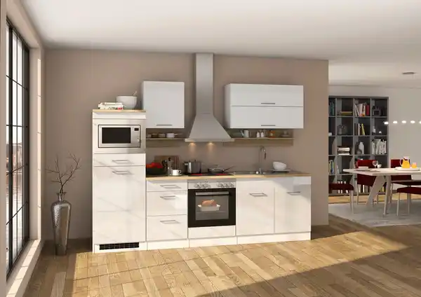 Küchenblock in Weiss inkl. E-Geräte 'Mailand', Weiß, Eichefarben, Weiß Hochglanz