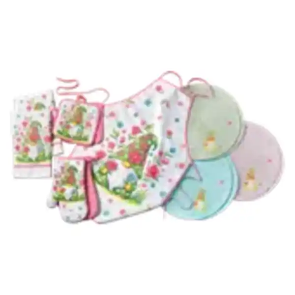 versch. Ausführungen 2er-Set Topflappen, 2er-Set Geschirrhandtuch, 2er-Set Ofenhandschuhe, Schürze, 2er-Set Platzmatten Wichtel Frühling, mit gesticktem Motiv ø ca. 38 cm, versch. Designs