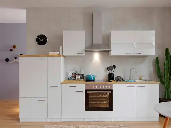 Küchenzeile Economy o. Geräte Weiß/Nussbaum B: ca. 300 cm, Weiß