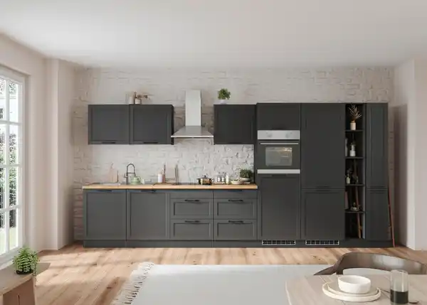 Küchenzeile Meran mit Geräten ca. 420 cm Grau/Eiche Dekor, Grau, Eiche Wotan
