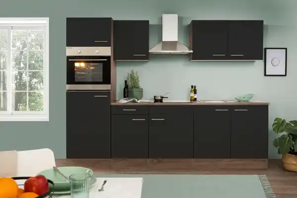 Küchenzeile mit Geräte Schwarz /Eiche Dekor B: ca. 270 cm, Schwarz, Eichefarben
