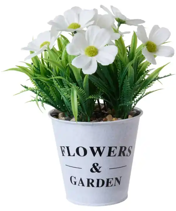 Kunstblume im Metalltopf, weiß