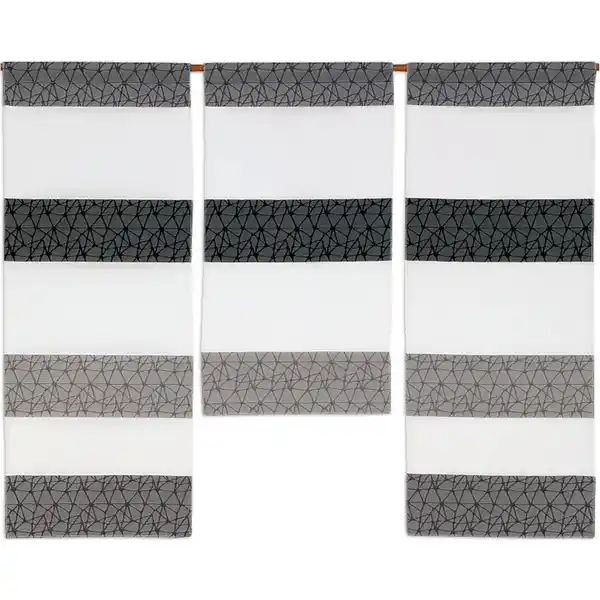 Kurzgardine, in der Farbe Grau, Weiß, Hellgrau, aus dem Material Textil und das Design Streifen. Der Artikel hat eine Größe von 90x80 cm., hat die Auszeichnung: Oeko-Tex® Standard 100., die Besonderheiten des Artikels sind mit Beschwerungsstab., folgender Montagehinweis: Tunnel.