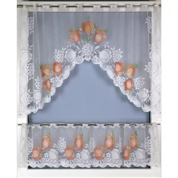 Kurzgardinenset Bistro Gardinen SET Handcoloriert, Weiß, Terracotta, Textil, Blume, 150x105 cm, Oeko-Tex® Standard 100, ohne Technik, Wohntextilien, Gardinen & Vorhänge, Fertiggardinen, Scheibenga