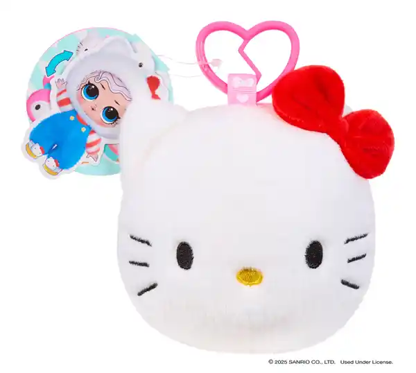 Dieser flauschige Plüsch im Hello Kitty Design begeistert mit einem magischen 2-in-1 Überraschungseffekt: Einfach umstülpen und schon kommt ein neuer niedlicher Sanrio-Charakter zum Vorschein! Im Inneren verstecken sich ein kleines Püppchen, ein passendes Outfit und süße Accessoires – ideal zum Spielen und Sammeln. Insgesamt warten sechs verschiedene Charaktere darauf, entdeckt zu werden. Dank des praktischen Schlüsselanhängers ist dein Lieblingscharakter immer mit dabei – ob am Rucksack, an der Tasche oder unterwegs. Kuschelig, überraschend und absolut liebenswert! • Plüsch im Hello Kitty Design • 2-in-1 Überraschungseffekt • Umstülpen und einen neuen Sanrio-Charakter entdecken • Püppchen, Outfit und Accessoires verstecken sich im Plüsch • mit Schlüsselanhänger • 6 Charaktere zum Sammeln