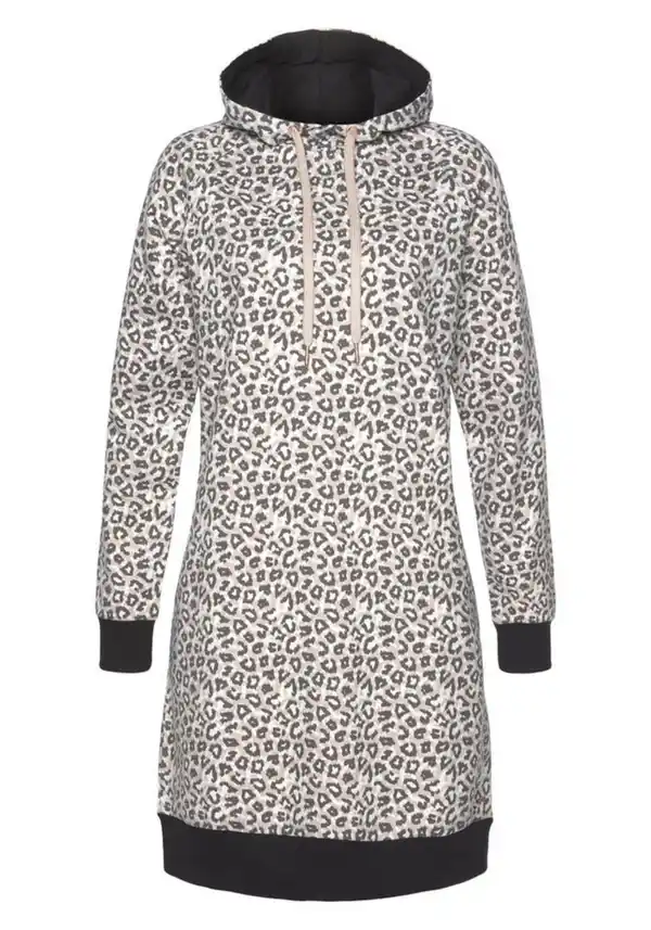 LASCANA Sweatkleid mit Kapuze -seitlichen Eingrifftaschen und Rippbündchen, Beige|schwarz