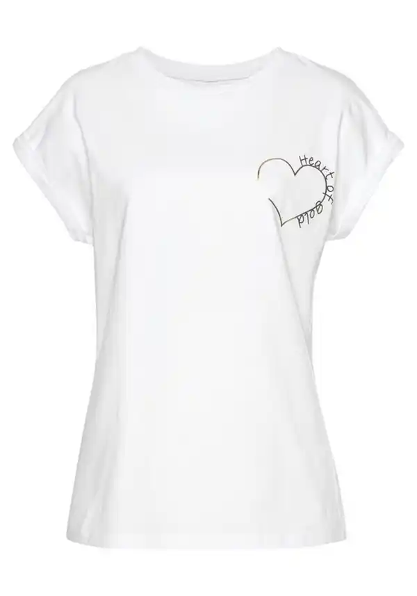 Mit diesem coolen Shirt von Lascana setzt du nicht nur ein modisches Statement! In Szene gesetzt wird das T-Shirt von einem schimmernden Druck mit liebevoller Botschaft. Ein toller Hingucker! Das Oberteil verfügt über einen runden Halsausschnitt und ist figurumspielend geschnitten. Für noch mehr Tragekomfort sorgt zudem die weiche Baumwollqualität. Zu Skinny-Jeans und Sneakern gestylt, entsteht im Handumdrehen ein angesagter Freizeitlook. Einfach ein Muss in deinem Kleiderschrank – das Shirt von Lascana!