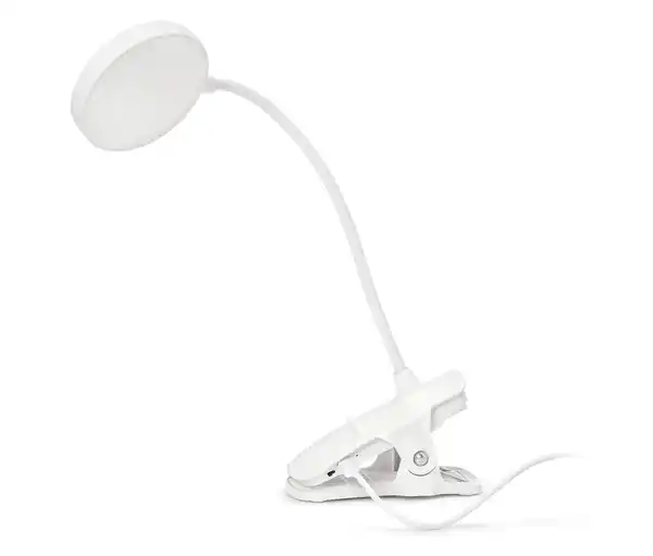 LED-Akku-Klemmleuchte Farbe: Weiß Material: Acrylnitril-Butadien-Styrol Hals Metall, Kunststoff Maße: B x H x T ca. 5,5 x 28 x 12 cm Länge Leuchtenarm ca. 22 cm Länge USB-Kabel ca. 2 m Klemmenöffnung ca. 5 cm Inhalt: Inkl. USB-A- auf USB-C-Ladekabel und Bedienungsanleitung Leistung: 0,5 W Batterie-/Akkulaufzeit: Leuchtdauer mit vollgeladenem Akku bei 100% ca. 20 Stunden Energieeffizienz-Angaben: Dieses Leuchtmittel darf nicht über den Hausmüll entsorgt werden. Informationen zur Entsorgung sowie zu Sammelstellen in Ihrer Nähe finden Sie unter www.tchibo.de Gebrauchsanweisung: Ladekontrolle: Rotes Leuchten um den Einschalter während des Ladevorgangs, grünes Leuchten bei vollgeladenem Akku Technische Details: Li-Akku 2.000 mAh Flexibel platzierbar und wiederaufladbarFest integrierte LEDs mit Step-Dimmingfunktion: 25%, 50% oder 100% – Lichtfarbe warmweißMit der Klammer an einer Tischkante oder frei stehend platzierbarFlexibler LeuchtenarmTouch-Schalter an der KlemmeMit Ladekontrollleuchte Betrieb auch per Kabel und mitgeliefertem Netzadapter möglich