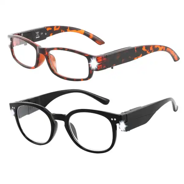 Gestell aus Kunststoff > Mit beidseitigem LED-Licht > Ideal zum Lesen, Nähen etc. in dunkler Umgebung > Gläser mit Hartlackbeschichtung > Dioptrien +1.5 bis +3.0