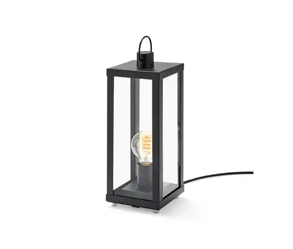 LED-Outdoor-Laterne Farbe: Matt schwarz Material: Metall, Glas Maße: B x H x T ca. 16 x 42 x 16 cm Gesamthöhe inkl. Griff ca. 46 cm Länge Kabel ca. 5 m Inhalt: Inkl. 1 LED-Leuchtmittel und Bedienungsanleitung Leistung: 4 W Energieeffizienz-Angaben: Infos zur Entsorgung sowie zu Sammelstellen in Ihrer Nähe unter www.tchibo.de LED-Leuchtmittel austauschbar Mit wirkungsvollem LED-FilamentleuchtmittelFür den Außenbereich geeignetLeuchte aus matt schwarzem MetallInkl. LED-Filamentleuchtmittel, getönt und E27-FassungKabellänge ca. 5 mBodenschonende SilikonfüßeUnterseite der Leuchte lässt sich für Leuchtmittelwechsel leicht öffnen