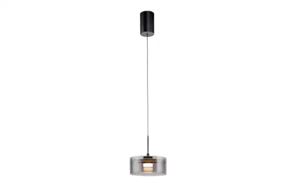 Die LED-Pendelleuchte aus der Serie Karena ist modern und multifunktional, der Lampenschirm ist aus Rauchglas gefertigt, Absetzung in Schwarz,