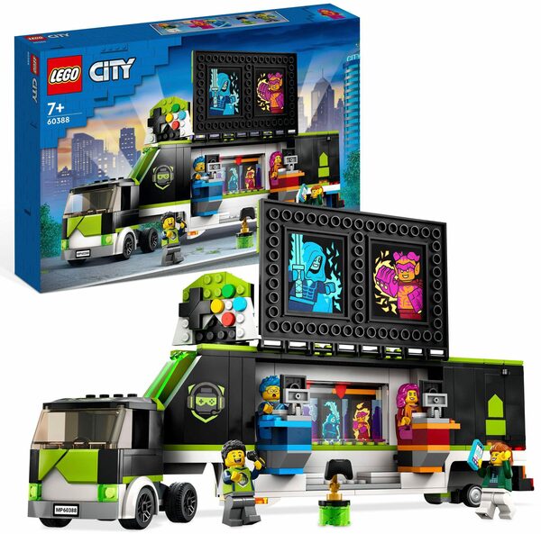 - LEGO City Gaming Turnier Truck mit einen baubaren Spielzeug-Truck, einen Moderator und 2 LEGO City Minifiguren sowie jede Menge lustigem Zubehör - Ab 7 Jahren - Die Seite des Anhängers lässt sich aufklappen u. gibt den Blick frei auf die Bühne des Gaming-Turniers mit 2 Spielzeug-Computerspielstationen u. Stadionbildschirmen - Videospiel-Fans können das Spielgeschehen auf dem Bildschirm des Spielzeugstadions verfolgen und den Fortschrittsbalken für die konkurrierenden Minifiguren anpassen - Mit 344 Teilen Der LEGO City Gaming Turnier Truck (60388) für Kinder ab 7 Jahren ist für das große Match zwischen den E-Sports Champions in LEGO City eingetroffen und bietet jede Menge Möglichkeiten zum fantasievollen Spielen. Dieses Truck-Spielzeug ist vollgepackt mit cooler Ausrüstung und Fanartikeln für begeisterte Videospiel-fans. Die Kinder klappen die Seite des riesigen Anhängers hoch, um eine Bühne mit 2 Spielstationen für Computerspiele und eine Stadionleinwand mit lustigen Animationsfunktionen sowie einen Siegerpokal und coole Fanartikel für die E-Sport Fans von LEGO City zum Vorschein zu bringen. Füge einfach den Moderator und die spielenden LEGO City Minifiguren hinzu und lass das Turnier beginnen! Dieses Spielzeug für Kinder ab 7 Jahren enthält eine bebilderte Bauanleitung und die LEGO Builder App - eine fantastische digitale Anleitung mit Zoom- und Drehfunktionen, die es den Kindern ermöglicht, das fertige LEGO Fahrzeug während des Baus aus allen Blickwinkeln zu betrachten. Wir wachsen umgeben von erstaunlichen Fahrzeugen und Maschinen auf, und mit dem LEGO City Great Vehicles Bau-Spielzeug können Kinder diese aus nächster Nähe erkunden, mit realistischen Modellen und inspirierenden Figuren für kreative Rollenspiele. Dieses Spielzeug für Kinder ab 7 Jahren ist eine tolle Gamer-Geschenk für Jungen und Mädchen. Der LEGO City Gaming Turnier Truck ist über 13 cm hoch, 33 cm lang und 6 cm breit. Enthält 344 Teile.