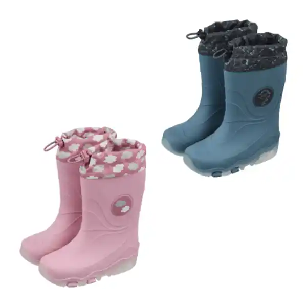 Obermaterial wasserdichtes SEBS; innen Textil; profilierte SEBS-Laufsohle mit Blinklichtern; verschiedene Farbvarianten