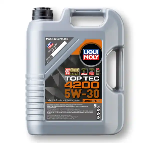 LIQUI MOLI Motorenöl für Benzin- und Dieselmotoren Produkt bei OTTO suchen Produkt bei Amazon suchen Verfügbarkeit Dieser Artikel war bis zum 28.11.2025 nur in der Filiale im Angebot. B1 Discount Filialen Produktbeschreibung »Top Tec 4200 5W-30« 5 l (1 l = 8.98) Marke: Liqui Moly Mehr Infos Empfehlungen Alle Motoröl Angebote Liqui Moly Motoröl Angebote Die neuesten Motoröl Angebote von B1 Discount Aktuelle Angebote der Marke Liqui Moly Liqui Moly Angebote von B1 Discount Alle Angebote von B1 Discount auf einen Blick