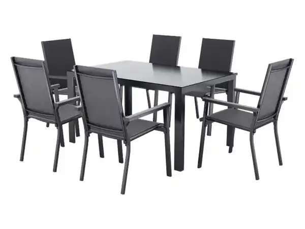 LIVARNO® Alu-Gartenset »Houston« 7-teilig - Standardtisch und 6 Stapelsessel, anthrazit