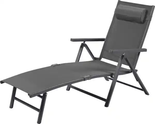 Ideal für Balkon, Garten oder Terrasse > Pulverbeschichteter Aluminium-Leichtrahmen > Mit komfortabler Textilbespannung > Witterungs- und UV-beständig, strapazierfähig > Rückenlehne in 7 Positionen verstellbar > Sicherheitsverschlüsse zur festen Arretierung > Abnehmbares Kopfpolster > Armlehnen aus pflegeleichtem Kunststoff > Sitz-/Liegehöhe ca. 32 cm > Platzsparend zusammenklappbar > Bodenschonende und rutschhemmende Profilfüße > Einfach zu reinigen > Belastbarkeit max. 110 kg > Größe ca. B 66 x H 68 - 94 x T 141 - 175 cm > 3 Jahre Garantie