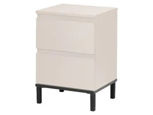 Elegantes Design mit hohem Raumangebot Kaschmirgraue Ausführung mit schwarzen, stabilen Beinen 2 leichtgängige Schubladen Kratzfest und pflegeleicht durch Melaminharzbeschichtung Ideal in Kombination mit weiteren Möbeln dieser Serie Max. Belastung Ablagefläche: ca. 7 kg Max. Belastung je Schublade: ca. 5 kg Inkl. Montagematerial und Anleitung Produktmerkmale Style: elegantes Design Funktion: keine Angabe Farbe: Kaschmirgrau Material: Spanplatte, Hdf, Kunststoff Maße: ca. B 37,9 x H 54,5 x T 33 cm Gewicht: ca. 9,7 kg Lieferumfang: 1x Nachttisch