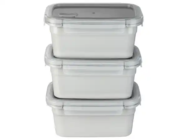 Deckel und Dosen einer Größe innerhalb gleicher Serien kombinierbar Mit Mikrowellenventil Zum Frischhalten, Einfrieren und Aufwärmen von Lebensmitteln Deckel mit auslaufsicherer Dichtung und Klickverschlüssen Platzsparend ineinander stapelbar Temperaturbeständig von -20 bis 100 °C BPA-frei: kein Bisphenol A Mikrowellen-* und spülmaschinengeeignet 2er-Set : Nutzvolumen ca. 1 l 3er-Set : Nutzvolumen ca. 0,5 l Produktmerkmale ; Maße: 2er-Set: ca. 20,2 x 13,7 x 8,7 cm; 3er-Set: ca. 16,6 x 10,9 x 7,5 cm Spülmaschinengeeignet: ja Mikrowellengeeignet: ja, mit geöffnetem Ventil