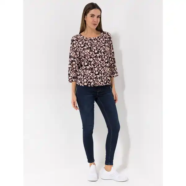 Modische Bluse Echter Hingucker: Die LOVELY SISTERS® Bluse ist aus angenehmer Viskose Auf einen Blick Materialmix aus Viskose & Viskose/Jersey Rundhalsausschnitt Schlitz mit verdecktem Knopf und Schlaufe Maße (Größe 38) Länge: ca. 56 cm Material 50 % Viskose, 50 % Polyester (Vorderteil uni) 95 % Viskose, 5 % Elasthan (Rückenteil uni) 100 % Viskose (Vorderteil bedruckt) 95 % Viskose, 5 % Elasthan (Rückenteil bedruckt) Pflege Maschinenwäsche