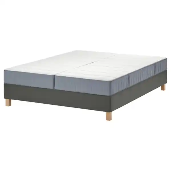 LYNGÖR Boxspringbett, Vesteröy fest/hellblau dunkelgrau, 160x200 cm