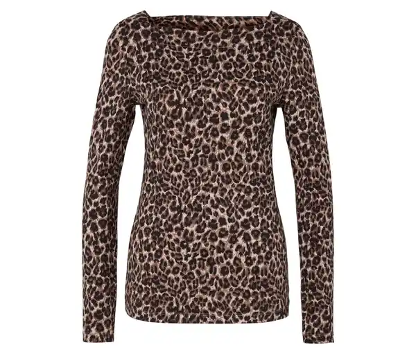Langarmshirt, beige mit braun-schwarzem Leo-Alloverprint