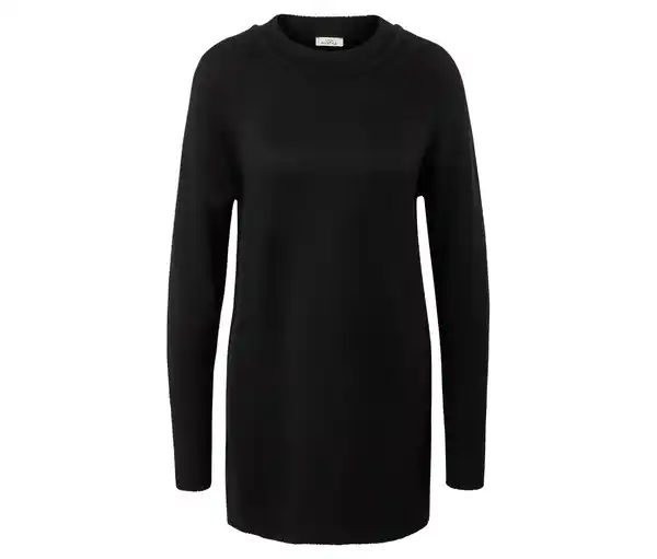 Langer Strickpullover, schwarz Farbe: Schwarz Material: 54% Polyester, 20% Polyacryl, 20% Polyamid, 6% Wolle Maße: Gesamtlänge ca. 77 cm (Gr. M 40/42) Passform: Regular Fit Weiche, wärmende Qualität mit RWS-zertifizierter WolleBreite Rippbündchen Ärmelabschluss und SaumLängere, leicht ausgestellte SilhouetteRaglanärmelHochgeschlossener Rundhalsausschnitt mit RippbündchenSaum mit SeitenschlitzenDieser Pullover beinhaltet 6% RWS-zertifizierte Wolle, zertifiziert durch CU 809415