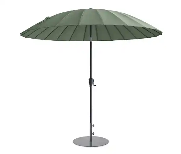Leco Shanghai Sonnenschirm*, Ø 270 cm, grün Farbe: Gestell anthrazit Schirmbespannung salbei Material: Standrohr Aluminium Schirmstreben Fiberglas Schirmbespannung 180g/m2 Polyestergewebe Maße: Ø ca. 260 cm Gesamthöhe ca. 250 cm Durchgangshöhe ca. 199 cm Ø Standrohr ca. 38 mm Ø Fiberglas-Schirmstreben je ca. 5 mm Höhe Kurbel ca. 110 cm Inhalt: Inkl. Sonnenschirm und Montageanleitung Lieferung ohne Schirmständer – separat zu erwerben Gewicht: Ca. 5 kg Gebrauchsanweisung: Schirmständer nicht im Lieferumfang enthalten Lichtschutzfaktor 50+ Nur für die Nutzung im Privatbereich Die gewerbliche Nutzung ist nicht vorgesehen Niemals ohne Schirmständer verwenden Gebrauchsanweisung lesen und beachten Sonstige Hinweise: Artikel wird zerlegt geliefert Lieferung in 1 Packstück bis zum Haus Keine Inselbelieferung B x H x T Packstück ca. 155 x 14 x 14 cm, Gewicht ca. 6 kg Garantiegeber: LECO-Werke Lechtreck GmbH & Co. KG Herstellergarantie: 2 Jahre bei sachgerechter Verwendung Garantieumfang: gesamtes Produkt Räumlicher Geltungsbereich: Deutschland & Österreich Hersteller-Artikel-Nummer: 4720705207 Hersteller: LECO-Werke Lechtreck GmbH & Co. KG, Hollefeldstraße 41, 48282 Emsdetten E-Mail: info@leco-werke.de Ein Blickfang für alle Terassen, mit einfacher Bedienung per Handkurbel und zusätzlicher KnickfunktionKnickfunktion bietet auch bei tiefem Sonnenstand SchattenStabiles Gestell aus Aluminium, 24 Streben aus flexiblem FiberglasPer Kurbel lässt bequem auf einen Durchmesser von bis zu 270 cm aufspannbarLichtschutzfaktor UV 50+Aluminium-Standrohr, ca. 38 mmPolyesterbezug regenabweisend, mit einer guten Lichtechtheit und in verschiedenen Farben erhältlichLieferung ohne Schirmständer, separat zu erwerben