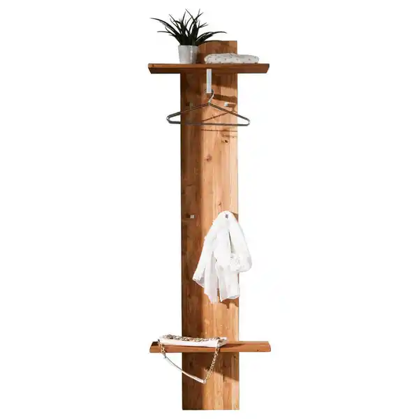 Linea Natura Garderobenpaneel, Eiche, Holz, Asteiche, massiv, 60x192x28 cm, Aufhängemöglichkeit, Hutablage, Kleiderstange, Holzmöbel, Garderoben Holz, Garderobenpaneele Holz