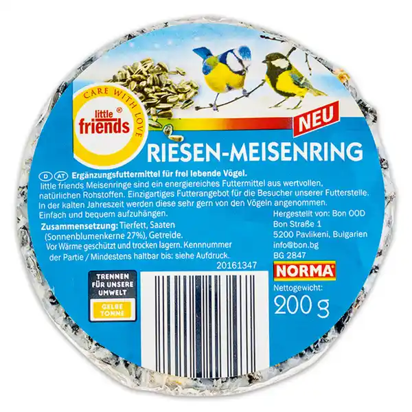 - Riesen-Meisenring je 200 g (1 kg = 9,95) z.B. Riesen-Meisenringje 200 g (1 kg = 9,95)