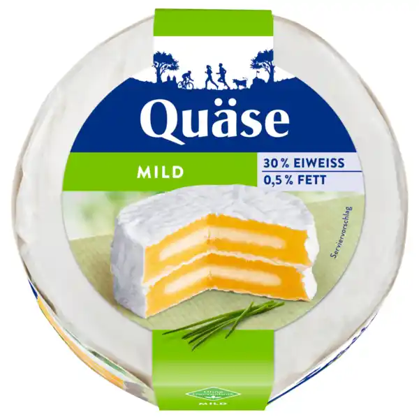 Der Quäse Mild, unser Dezenter mit viel Eiweiß und wenig Fett. Er wird mit einer Edelschimmel-Kultur veredelt und bietet ein individuelles Geschmackserlebnis von jung und quarkig bis hin zu mild-aromatisch und durchgereift.