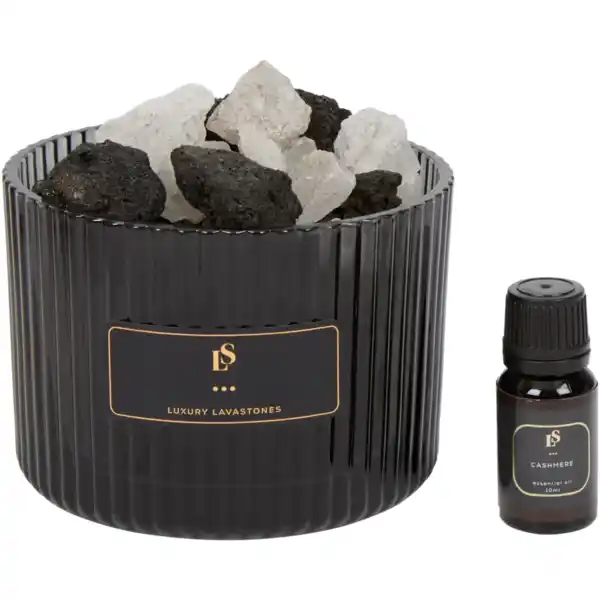 Dieses Glas mit Lavasteinen bringt frische Düfte stilvoll in dein Zuhause. Einfach ein paar Tropfen Duftöl auf die Steine geben, schon verbreitet sich ein angenehmer Geruch, der für eine entspannte Atmosphäre sorgt.