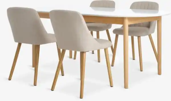 MARSTRAND L200/280 Tisch weiß + 4 ADSLEV o/Armlehne beige