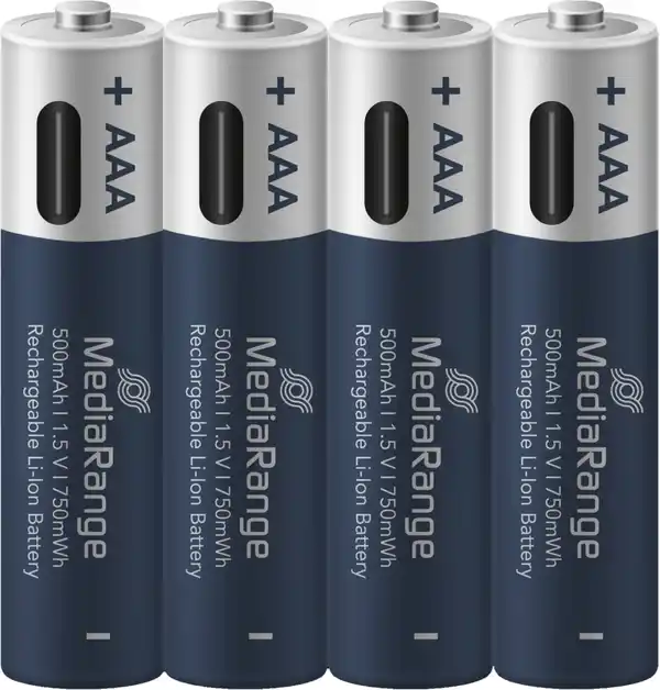 Li-Ion-Technologie > Kapazität 500 mAh > Per USB-C aufladbar > Bis zu 1.200 Ladezyklen > Inkl. 4-zu-1-USB-Ladekabel