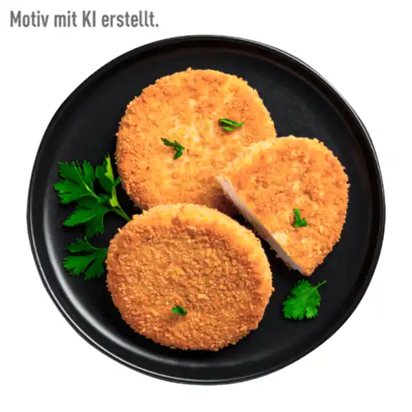 Aus Hähnchenfleisch; vorgegart; flüssig gewürzt; paniert; zum Erhitzen; 6 Pattys