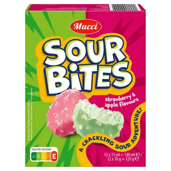 \n- Je 180-ml-Packung - Neu: Saure Eis-Pralinen in den Sorten Erdbeer & Grüner Apfel sowie Apfel-Pfirsich & Himbeere