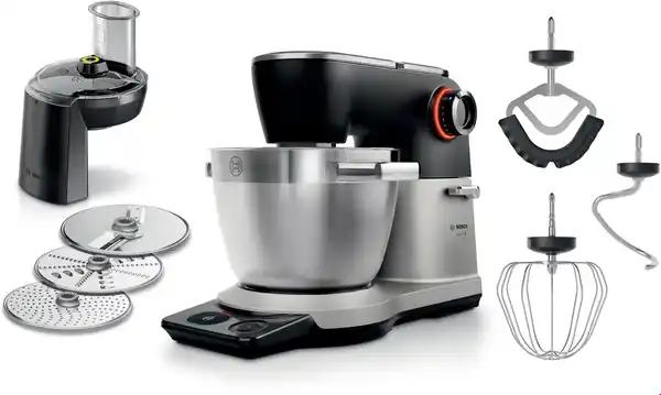 MUMS8ZS13 Universal-Küchenmaschine Leistung und Langlebigkeit Leistungsstarker luftgekühlter Motor mit 1.800 W für hohe Anforderungen und müheloses Kneten sorgt für langanhaltende Leistung bei schweren Teigen - keine Überhitzung dank konstanter Kühlung, plus 10 Jahre Motorgarantie 3D PlanetaryMixing: Kneten wie von Hand für perfekte Teige und perfekt vermischte Zutaten Extra große XL-Schüssel aus gebürstetem Edelstahl: 6 l Fassungsvermögen und mit zwei ergonomischen Griffen ausgestattet, für bis zu 3,6 kg Kuchenteig oder 2,8 kg Brotteig Vollmetallgehäuse: ausdauernd, solide und langlebig im Einsatz - mit 10 Jahren Gehäusegarantie Komfort Höchste Bedienfreundlichkeit dank des innovativen TFT-Displays und dem neuen Navigationsring für einfache Bedienung auch mit nassen oder öligen Fingern Perfekte Ergebnisse dank sensorgesteuerten Automatikprogrammen. Die Smart Sensor Technology erkennt automatisch, wenn das Ergebnis perfekt ist und stoppt selbstständig das Gerät. So kann man sich auf die weiteren Arbeitsschritte konzentrieren und muss sich nicht darum kümmern, ob nicht doch die Sahne zu Butter wird. Die Sensorik ist auf verschiedene Anwendungsfälle abgestimmt wie Eischnee, Schlagsahne oder Hefeteig. Perfektes Brot mit einem sensorgesteuerten Hefe- und Sauerteig-Automatikprogramm für Backbegeisterte: Die Küchenmaschine kümmert sich automatisch um den Knet-, Ruhe- und zweiten Knetvorgang Integrierte Waage - misst zusätzlich ml, ml Milch, ml Öl, g, oz & lbs, optimiert zum Wiegen auf dem Gerät oder einfach direkt in der Schüssel oder im Zubehör Integrierter Timer mit Ausschalt-Funktion: einfach Zeit eingeben und die Küchenmaschine stoppt automatisch, wenn die gewählte Zeit abgelaufen ist. 7 Geschwindigkeitsstufen, eine Stufe zum Unterheben und eine Stufe für maximale Power. Einfaches und müheloses Öffnen des Rührarms per Knopfdruck dank EasyArmLift. Immer den richtigen Antrieb nutzen: die Antriebe und das entsprechende Zubehör haben die gleiche farbliche Kennzeichnung. Enthaltenes Zubehör Professionelles Patisserie-Set: Hochwertiger Edelstahl-Knethaken, ein kräftiger Schneebesen und ein Rührer mit Silikonbeschichtung, für hervorragende Ergebnisse. Alle Teile sind spülmaschinengeeignet Spritzschutzdeckel aus verschlussfestem und langlebigem BPA-freiem Tritan-Material. Der Deckel ist mit einer Einfüllöffnung ausgestattet und bleibt beim Anheben des Arms oben Viele leckere Rezepte und Tipps passend für die Küchenmaschine Serie 8 sind in der Home Connect App enthalten (Die Küchenmaschine kann nicht mit der HomeConnect App verbunden oder gesteuert werden) Eine große Auswahl an hochwertigem Zubehör erweitert die Einsatzmöglichkeiten erheblich - vom Schneiden, Zerkleinern und Entsaften bis hin zur Nudelherstellung Mühelose Zubereitung: Inklusive Durchlaufschnitzler mit 3 Edelstahl-Scheiben zum schneiden, raspeln, reiben und mehr - Schneid-Wendescheibe(dick und dünn), Raspel- Wendescheibe (grob und fein) und Reibscheibe mittelfein