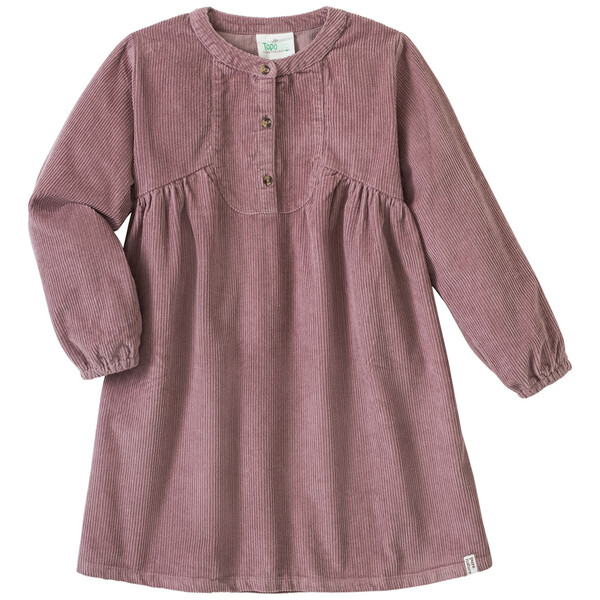 Hübsch durch den Herbst! Altrosa Kleid aus weich geripptem Cord. Mit rundem Halsausschnitt, kurzer Knopfleiste und elastischen Bündchen an den Armausschnitten. In A-Linie geschnitten. Das Global Organic Textile Standard-Siegel (GOTS) garantiert höchste Umwelt- und Sozialstandards der Produktionsprozesse und die Verwendung von Baumwollfasern aus kontrolliertem Bio-Anbau.